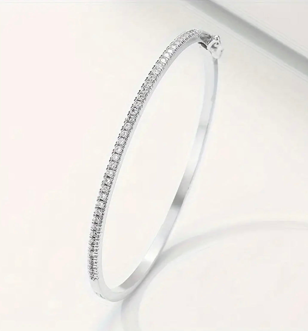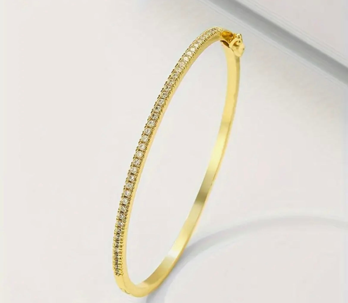 Cubic Zirconia Bangle Bracelet. Simple But Elegant. Choose Between 18kt White Plated Gold Or Yellow Plated Gold.
