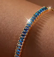 Baggette Shaped, Synthetic Stone, Plunger Closer Bracelet. Rose Gold Plated. Perfect For Everday. Colors: Saphire Blue Color, Teal Blue Color.