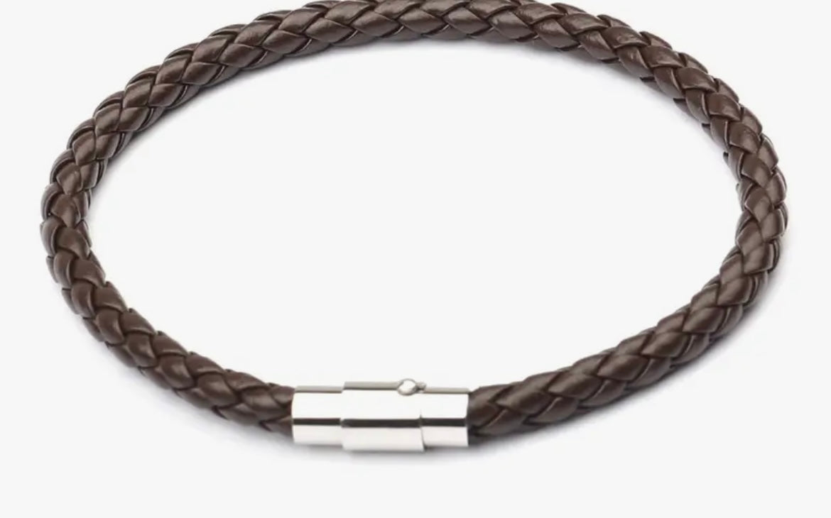 Men's European simple magnetic clasp braided leather bracelet.