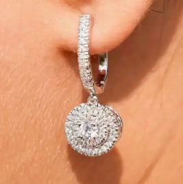 A Beautiful Pair of Sparkling Round Synthetic Zircon Drop Earrings, Set in Silver Plate. Fun For Any Occasion.