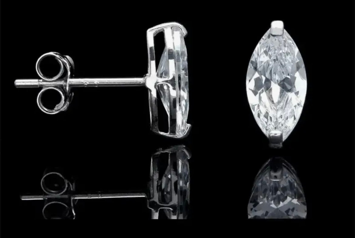 Pair of Marquize Cubic Zirconia Stud Earrings, set in 18k White Gold Plated.