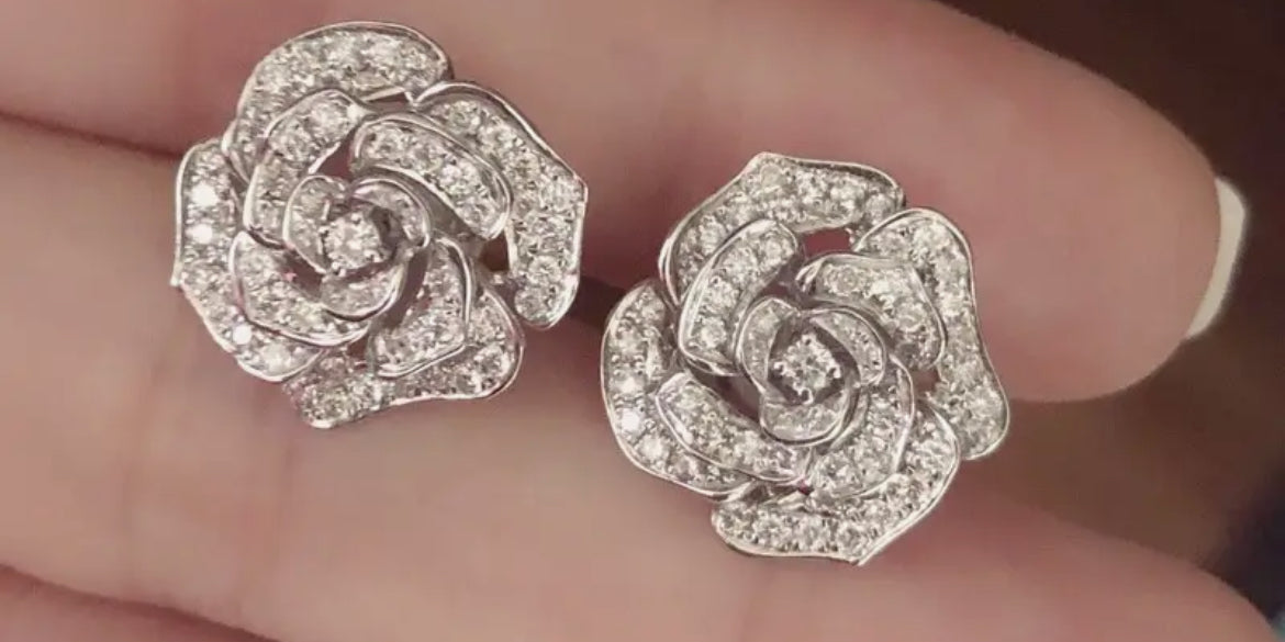 Rose Design Micro-Paved Cubic Zirconia Stud Earrings. Perfect for any Occasion. Nickle-Free Plated.