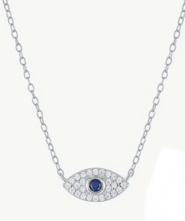 Sterling Silver Clear and Blue Zirconia, Evil Eye Necklace. 18inch with Extender. Great For Every Day.