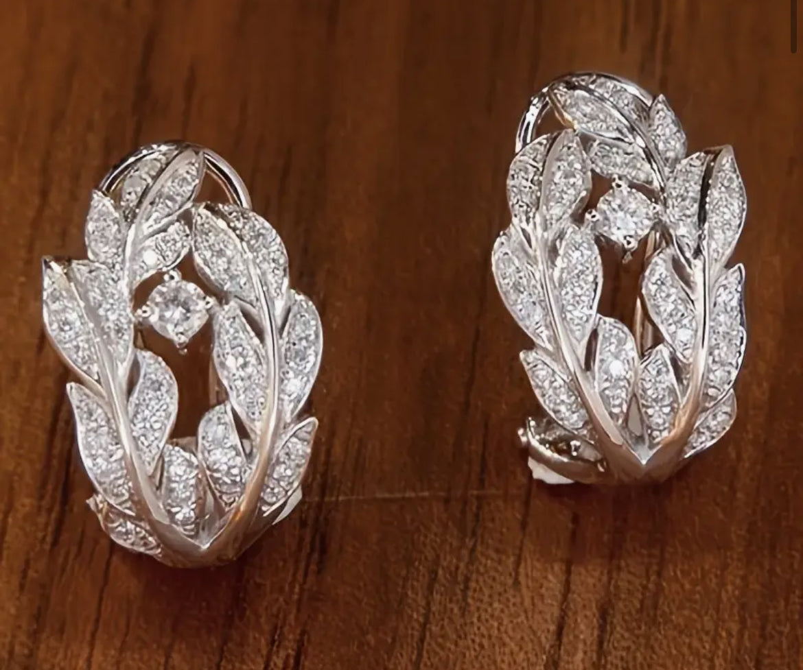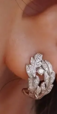A Beautiful Huggy Hoop Zirconia Earring, Sparkly Leaf Design. Copper with Nickle Free Plating. Perfect for any Occasion and Outfit.