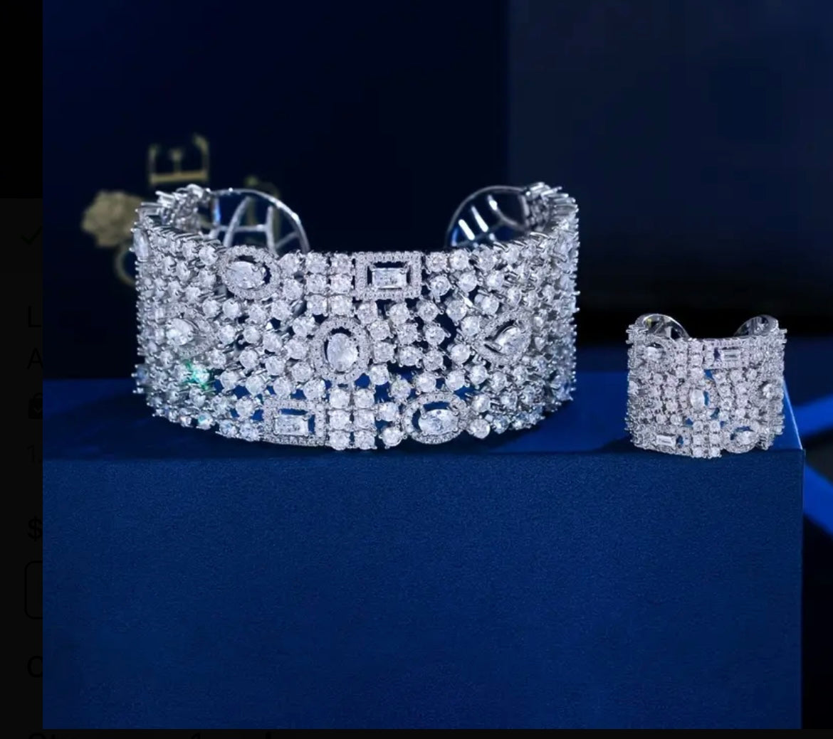 Wide Open Cuff Cubic Zirconia Bangle Bracelet and Ring Set. Beautiful Vintage Style, Silver Plated. Perfect for Weddings or Luxurious Occasions.