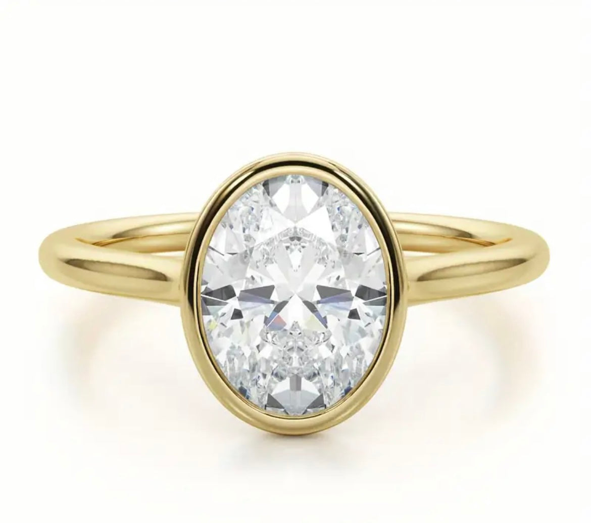 Elegant S925 Silver Gold-Plated Oval Zircon Ring. 3Ct in Size. Perfect for Daily Wear or Vacation Ring. Size 7 & 9.