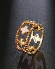 Four Leaf Clover Design, Wide Set Ring, Gold Plated in size 8. Goes with any Outfit.