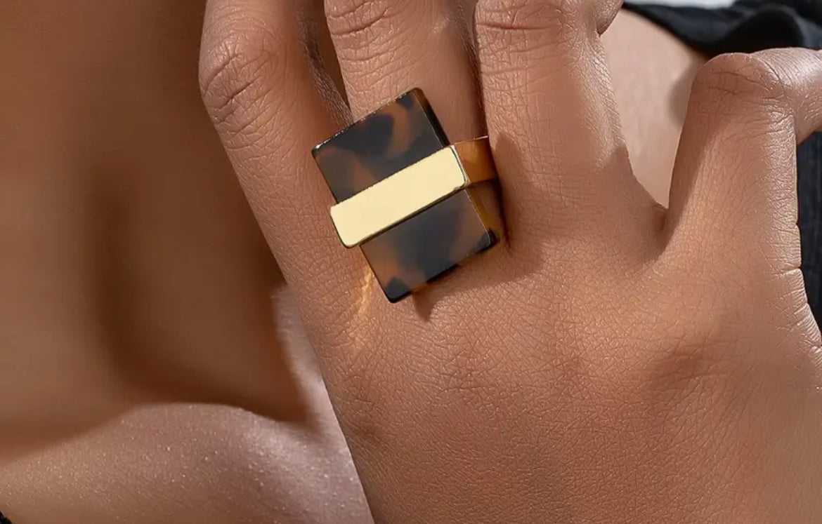 A Fun Tortuous Design Geometric Shaped Ring, Fun and stylish for Everyday Wear. Resin and Plated Metal.