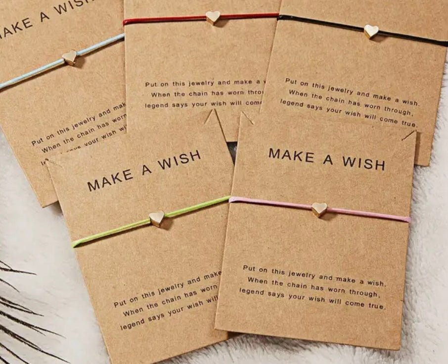 Simple Gold-Plated Copper Heart Charm Colorful Wax Rope Braided Handmade Make a Wish Bracelet. Great for Best Friends and Birthday Gifts.