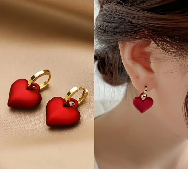 A Pair of Lager, Red Heart Dangle Earrings- 18k Golden Plated Alloy with Copper Posts. Perfect for any occasion.