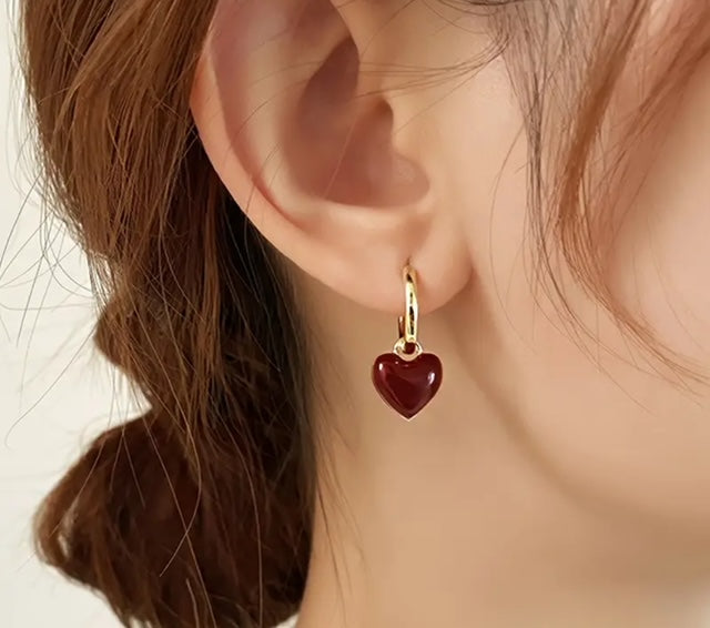 A Pair of Red Lacker Dangle Heart, Alloy with Stainless Steel Post Earring. For your Sweetheart.